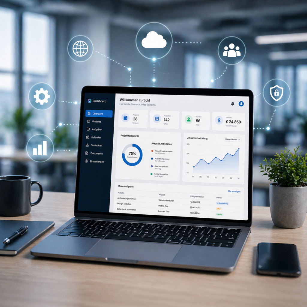 Wir erstellen moderne Anwendungen, die direkt im Browser laufen – ganz ohne Installation. Ob Verwaltungssysteme, Kundenportale oder interne Tools: Alles ist jederzeit online verfügbar und einfach zu bedienen.