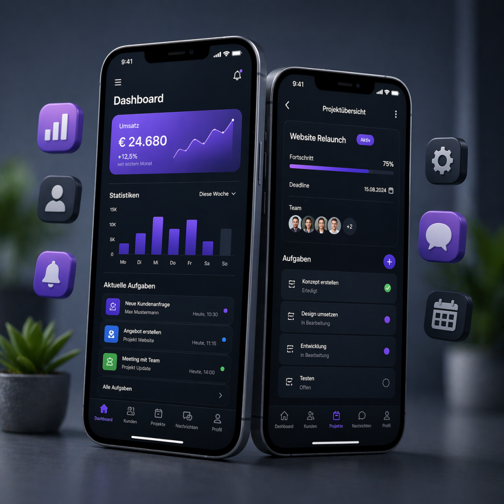 Wir entwickeln leistungsstarke Apps für iOS und Android, die auf Smartphones und Tablets reibungslos funktionieren. Dabei legen wir großen Wert auf einfache Bedienung, schnelle Ladezeiten und eine stabile Verbindung zu Ihren Systemen.