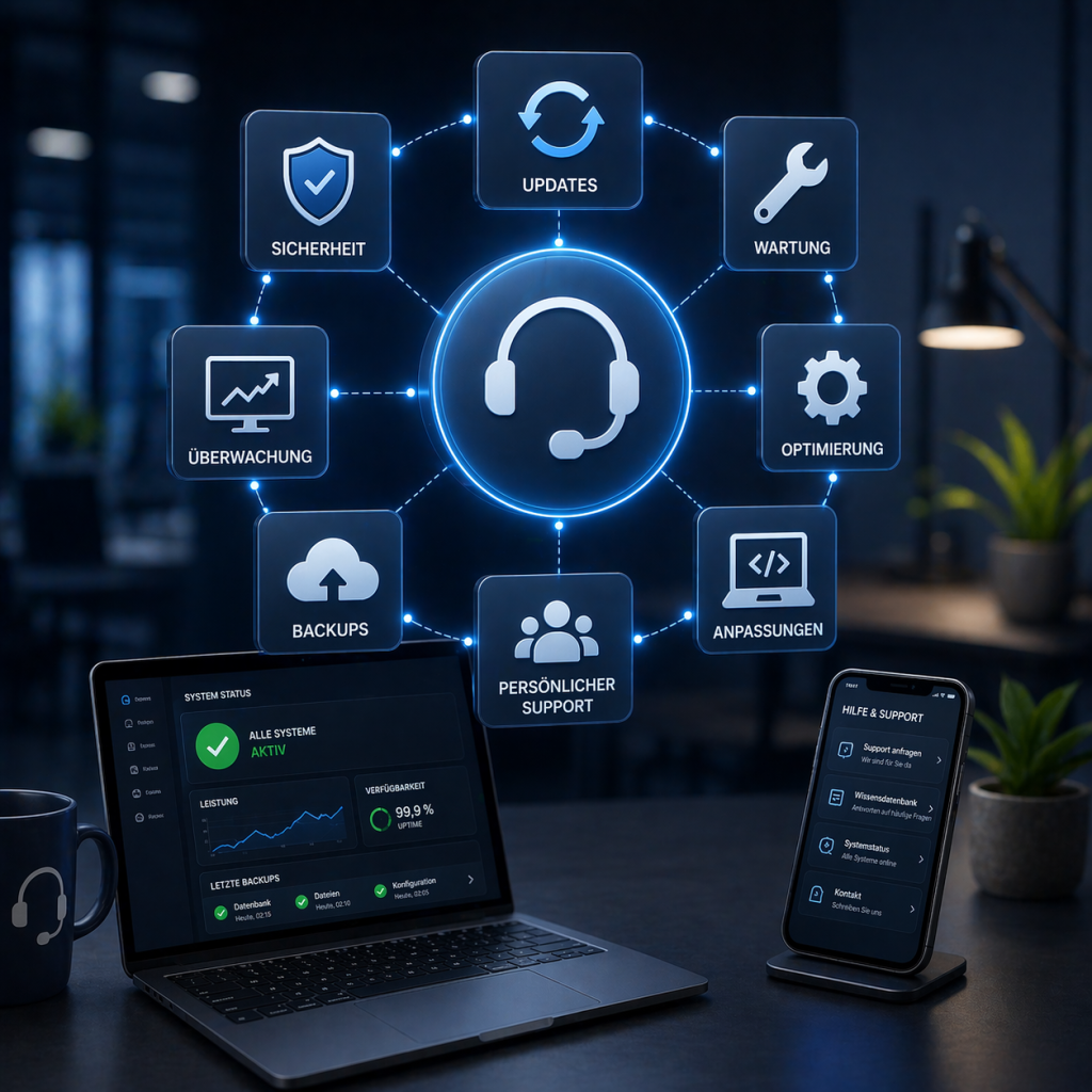 Auch nach dem Start bleiben wir an Ihrer Seite. Wir kümmern uns um Updates, Sicherheit und Anpassungen, wenn sich Ihr Unternehmen oder Ihre Anforderungen ändern.